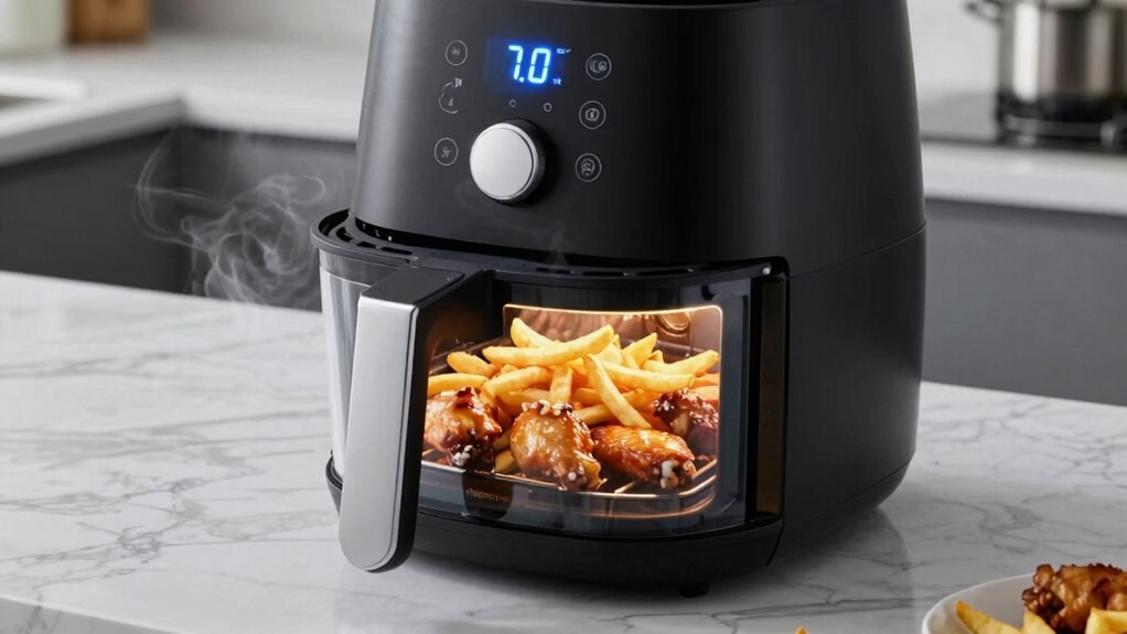 Your air fryer might beep during cooking because safety features are kicking in. If it’s overheating, the safety cutoff will sound to protect the appliance. Also, when the lid lock activates, it can trigger a beep to alert you that the unit is securely closed. Additionally, some models have self-diagnostic systems that cause beeping to indicate a malfunction or alert you to maintenance needs.