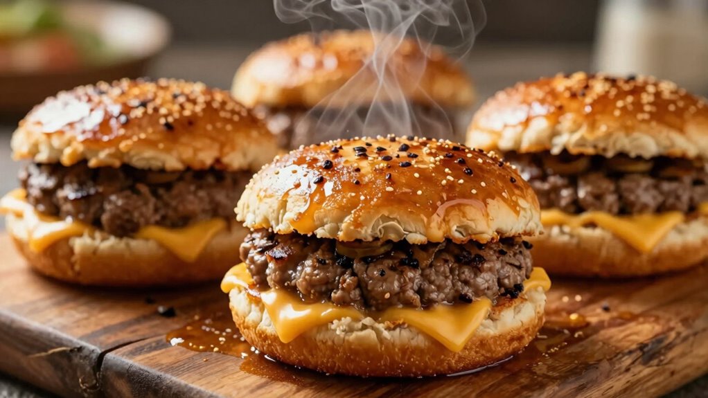 After cooking your burgers, letting them rest for a few minutes allows the juices to redistribute throughout the meat, ensuring each bite stays moist and flavorful. When ready to serve, focus on the final presentation. Here are three tips to keep your burgers juicy and appealing: