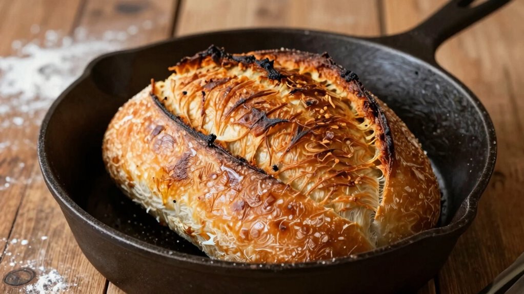By following these tips, you can guarantee your bread bakes to golden perfection instead of charcoal catastrophe. Picture each loaf rising like a sunrise, warm and inviting. With a little patience and care, your cast iron will become a trusted ally in the kitchen, transforming simple ingredients into delicious memories. So, embrace the process, and let your culinary creations shine, free from the shadows of burnt bottoms. Your taste buds will thank you with every bite!