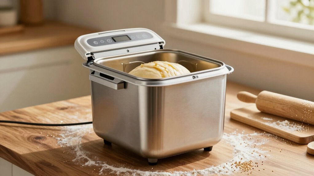 Using a bread machine for dough also opens up a world of recipe variations. You can experiment with different flours, grains, or add-ins like nuts and seeds to create unique flavors. The machine simplifies the process, allowing you to focus on creativity rather than laborious prep work. Just remember, when playing around with ingredients, keep an eye on the ratios to maintain that perfect dough texture.