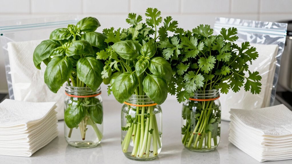 Using a paper towel to wrap your herbs absorbs excess moisture and keeps them crisp. Make certain your storage container has good airflow to prevent mold growth. Regularly check humidity levels to ensure your herbs stay fresh longer.