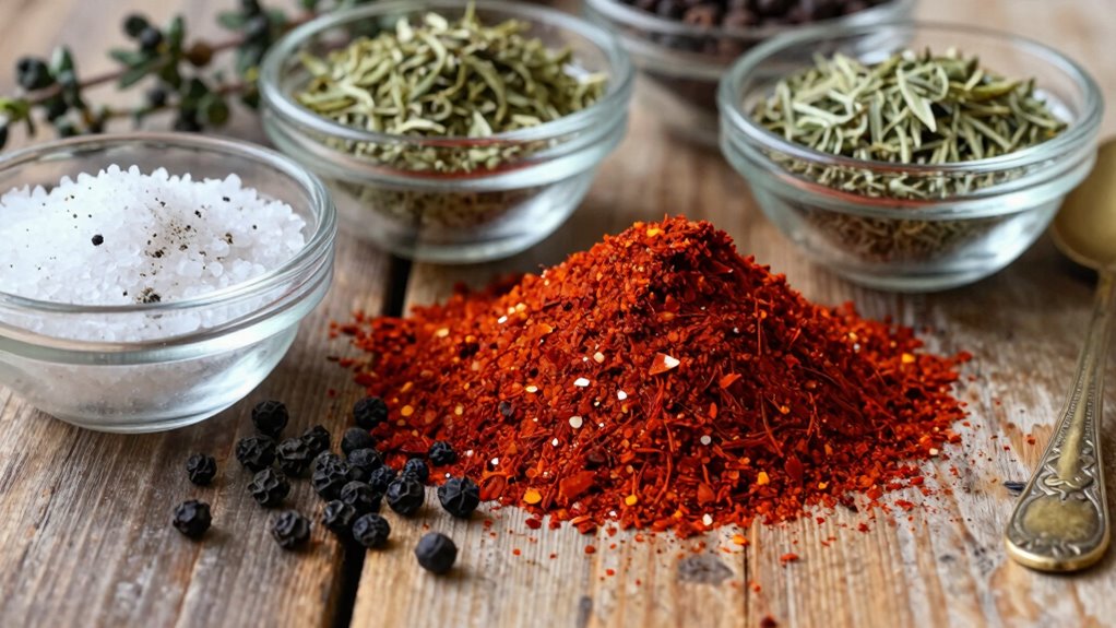 Have you ever wondered how to tweak your all-purpose seasoning to better suit different dishes? Adjusting salt and spices allows you to customize flavors effortlessly. For salt adjustment, add a pinch more for richer, savory dishes or reduce for delicate flavors. Spice variation lets you highlight certain notes—more cumin for warmth or extra garlic for zest. Use this simple table to guide your tweaks: