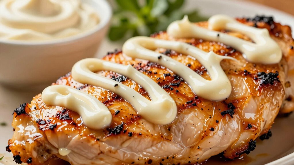 Think of mayonnaise as a secret sauce that transforms your meat into a juicy, tender masterpiece. When you use it wisely, it’s like giving your dish a cozy blanket, locking in moisture and flavor. So next time you’re aiming for perfectly cooked meat, remember mayo’s magic touch. With a little know-how, you’ll turn simple ingredients into a culinary symphony—delicious, moist, and irresistible every time.