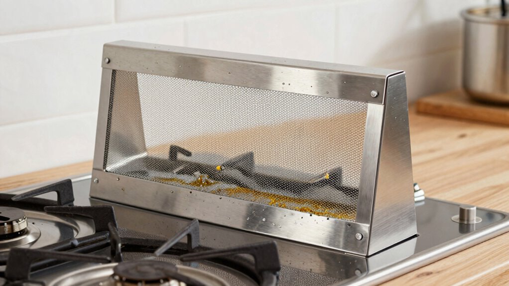 You should clean your range hood filters every 1 to 3 months, depending on how often you cook and the type of filter. Follow your filter maintenance routine and replace filters as needed—usually every 6 to 12 months for maximum performance. Regular cleaning prevents grease buildup, maintains air quality, and guarantees your range hood works efficiently. Keep an eye on your filters and stick to the recommended replacement schedule for best results.