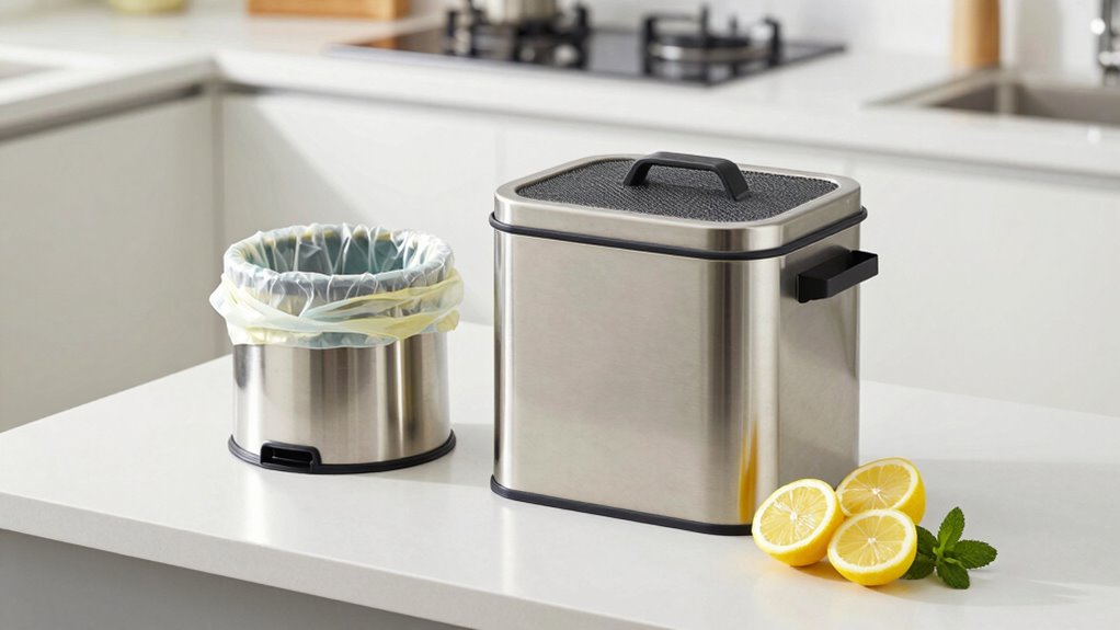 Did you know that using odor resistant bags can reduce kitchen smells by up to 80%? You should look for odor resistant bags or compostable liners designed specifically to contain odors. These bags contain odor-blocking materials that trap smells, keeping your kitchen fresher. Opt for compostable liners to be eco-friendly while still preventing odors effectively. Using the right bags makes a noticeable difference in maintaining a clean, odor-free space.