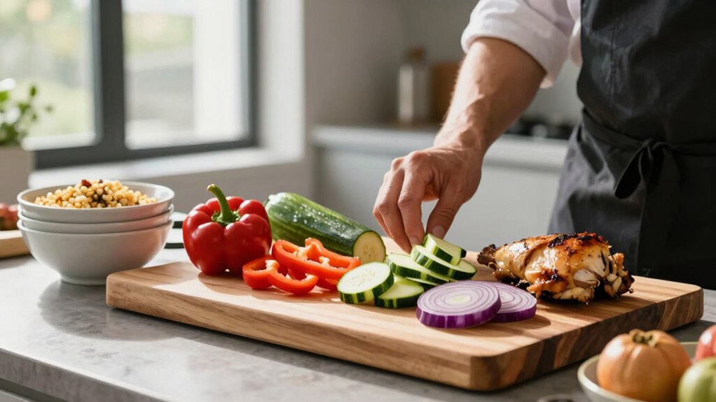 Selecting the right base ingredients is essential for maximizing versatility in your meal prep. When choosing, focus on ingredient versatility and flavor compatibility to guarantee your meals can easily adapt. Opt for neutral but flavorful staples that serve as a blank canvas, making them perfect for various remixes.