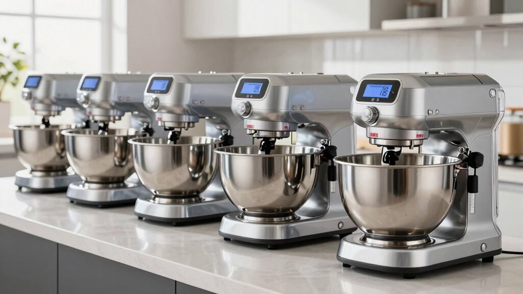 I’ve identified the top 15 dough kneading machines with large bowls in 2026, perfect for both home bakers and professionals. These models feature big capacities, powerful motors, and versatile functions like fermentation and proofing. Whether you need a compact unit or a commercial-grade mixer, there’s an option here for you. Keep going to discover detailed insights on each model and find the perfect fit for your kitchen needs.