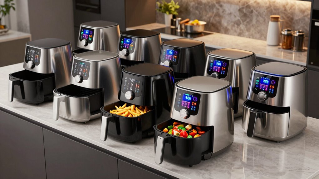 If you’re serious about making quick, versatile meals, a dual basket air fryer with separate temperature control is a game-changer. With so many top options out there, you’ll want one that fits your needs like a glove. Remember, the right appliance can make all the difference—don’t put all your eggs in one basket. Take your time, weigh your options, and you’ll be cooking like a pro in no time!