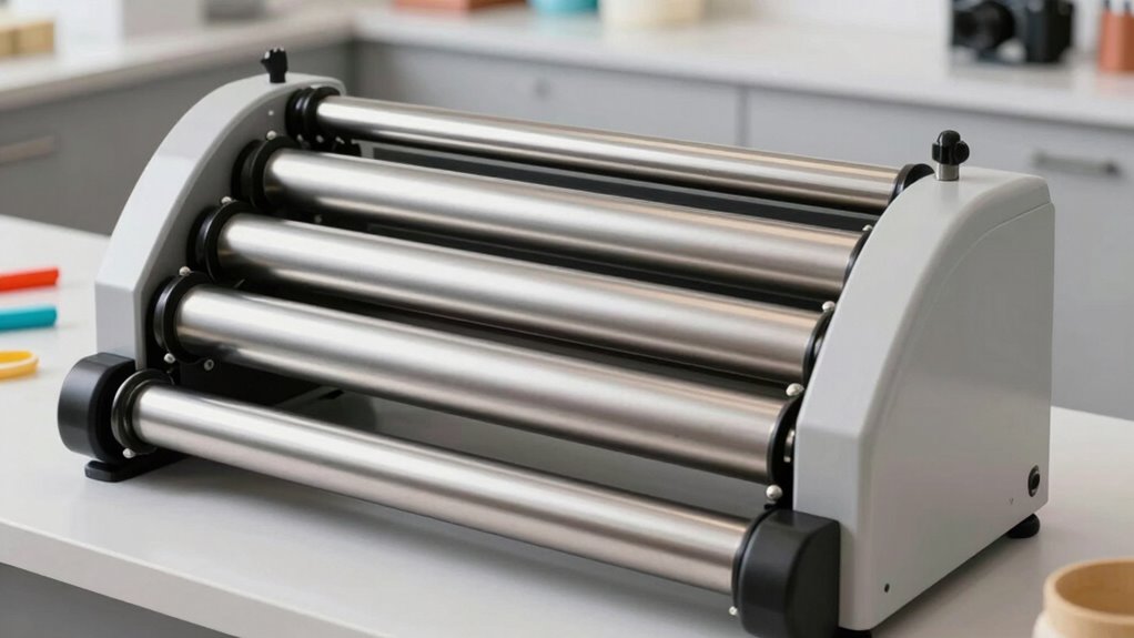 Choosing a fondant sheeter with wide rollers means considering how easy it is to keep the machine in excellent condition. Regular cleaning with a damp cloth prevents dough buildup and keeps the rollers moving smoothly. Periodic lubrication of moving parts reduces friction and extends the machine’s lifespan. It’s important to check and tighten fasteners and adjustment knobs regularly to ensure consistent thickness control. Promptly replacing worn or damaged rollers prevents uneven dough sheets and possible machine breakdowns. Following the manufacturer’s maintenance schedules and guidelines is essential for peak performance and safety. Proper care not only prolongs the life of your sheeter but also guarantees consistent, high-quality results. Staying on top of maintenance needs makes operation easier and less stressful.