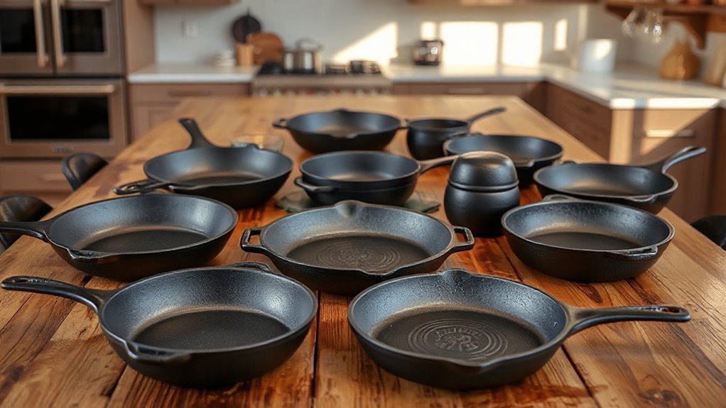 Choosing the right high-end cast iron skillet set can truly elevate your cooking game. Did you know that properly seasoned cast iron can last over a century with proper care? Investing in quality sets not only guarantees durability but also enhances flavor and presentation for oven-to-table meals. So, pick a set that fits your needs, and you’ll enjoy delicious dishes for generations to come. Happy cooking!