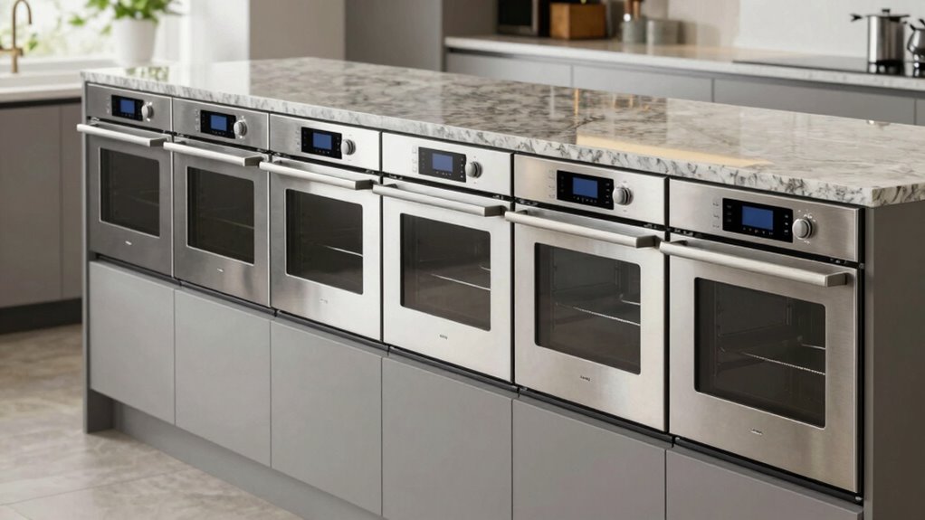 Think of replacement parts as the keys to extending a high-end oven’s life—I can confirm they’re generally readily available for these models. Manufacturers understand that durability matters, so they stock essential components like heating elements, fans, and control boards. While some parts might require a quick order, most premium brands ensure that replacements are accessible within a reasonable time frame, giving me confidence in investing in quality appliances.