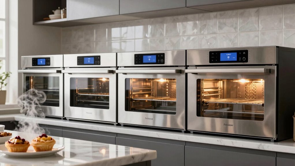 Yes, these ovens can reheat multiple pastries at once without sogginess. I find that their precise steam control guarantees even warmth and moisture retention, which keeps pastries crisp on the outside and tender inside. The high-end models I’ve used have spacious interiors and adjustable settings, so I can reheat several items simultaneously without compromising texture. It’s a game-changer for keeping pastries fresh and delicious, even in larger batches.