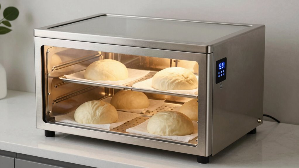 Choosing the right high-end sourdough proofing box is like finding the perfect compass for your baking journey. It guides your dough through the delicate art of fermentation, ensuring consistent, beautiful loaves. Remember, the right tool turns a simple recipe into a masterpiece. Invest wisely, and let your baking voyage be smooth and rewarding, just like a well-navigated ship reaching its destination with confidence and grace.