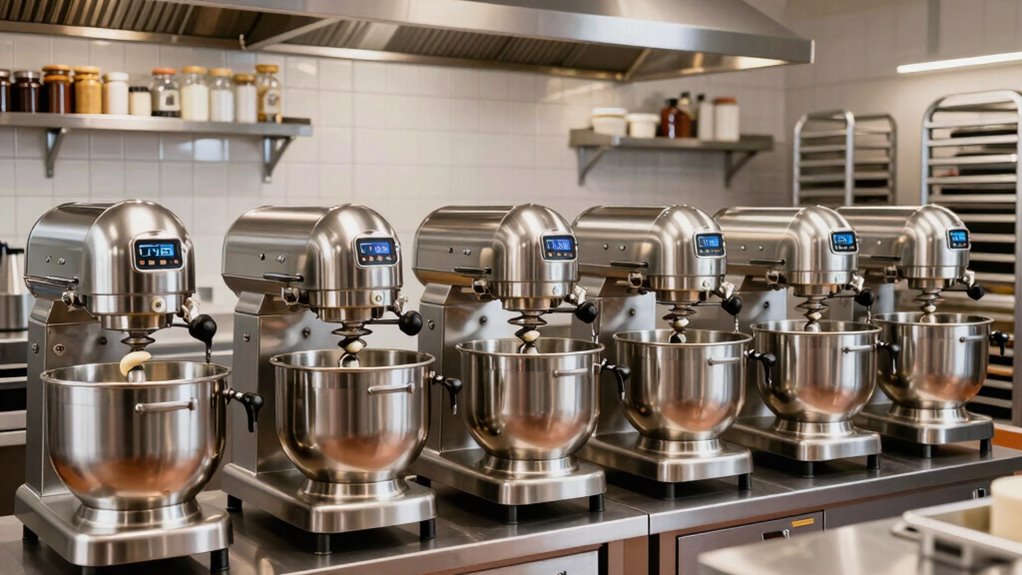 Think of accessories for premium spiral dough mixers as the Swiss Army knives of your kitchen. Yes, there are specific attachments compatible with these mixers, like dough hooks, flat beaters, and specialized bowls, designed to enhance functionality. I recommend checking the manufacturer’s guidelines, as using the right accessories guarantees ideal performance and longevity. It’s like giving your mixer the tools it needs to excel at every task.