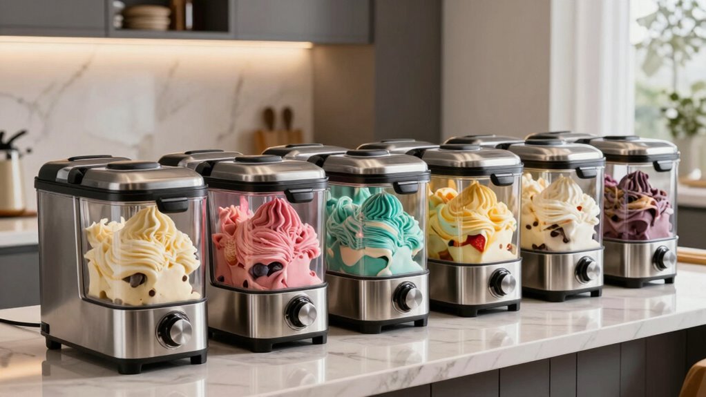 Yes, many of these large capacity ice cream makers can make dairy-free or vegan ice creams. I’ve found that they’re versatile enough to handle plant-based milks like almond, coconut, and soy, along with other vegan ingredients. Just guarantee you choose recipes that suit the machine’s freezing and mixing capabilities. With a little experimentation, you’ll be able to create delicious, creamy vegan ice creams right at home.