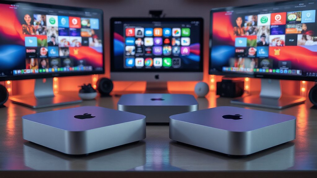 Yes, the Mac Mini can run multiple media server applications simultaneously. I’ve set mine up to handle Plex, Kodi, and Emby without any issues, thanks to its powerful processor and ample RAM options. Just make certain you have enough storage and proper network setup. With a bit of configuration, you’ll enjoy smooth, multitasking media streaming that keeps all your favorite servers running effortlessly.