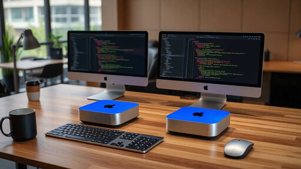 When selecting a Mac Mini for software development, I consider factors like processing power, memory, and storage to guarantee smooth performance. Compatibility with your display and connectivity options also play a big role in creating an efficient workspace. Understanding these points helps me choose a machine that fits both my development needs and future growth.