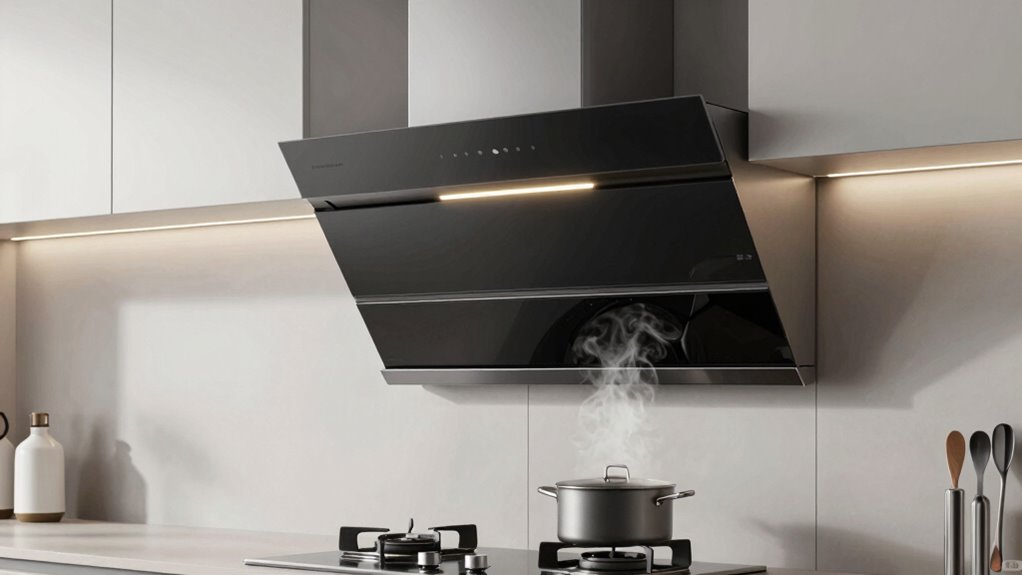 Adjustable speed settings play a crucial role in managing noise levels while maintaining effective ventilation. They let me customize airflow to suit different cooking needs, which is essential for balancing noise and performance. When I set the hood to a lower speed, it runs quietly—often under 50 dB—making it ideal for light cooking or simmering. For more intense tasks like frying or heavy smoke, I switch to higher speeds that increase airflow but may produce noise above 60 dB. Being able to easily toggle between multiple speeds helps me find the perfect balance between quiet operation and efficient ventilation. A range hood with precise, user-friendly speed controls makes my kitchen more comfortable by reducing noise without sacrificing performance.