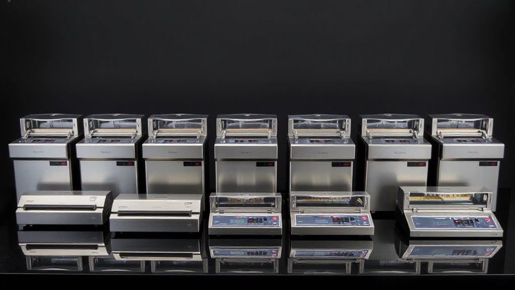 A versatile chamber vacuum sealer offers the flexibility to handle both solid foods and liquids, making it a valuable tool for various preservation needs. With adjustable vacuum and seal times, you can customize settings for different food types and bag materials, ensuring ideal results. Compatibility with various bag sizes, including embossed, textured, and custom-cut options, adds to its adaptability. Some models feature modes like marinating, external container sealing, and multi-step cycles, expanding their practical use. Accessories such as external hoses, jar ports, and built-in cutters further enhance functionality, allowing for diverse preservation tasks beyond simple bag sealing. This level of versatility makes a chamber vacuum sealer a smart investment for both home cooks and professional users seeking efficient, multi-purpose food preservation.
