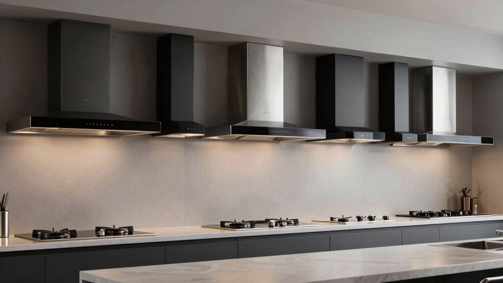 - Includes options with various finishes, lighting features, and adjustable fan speeds for customizable ventilation.