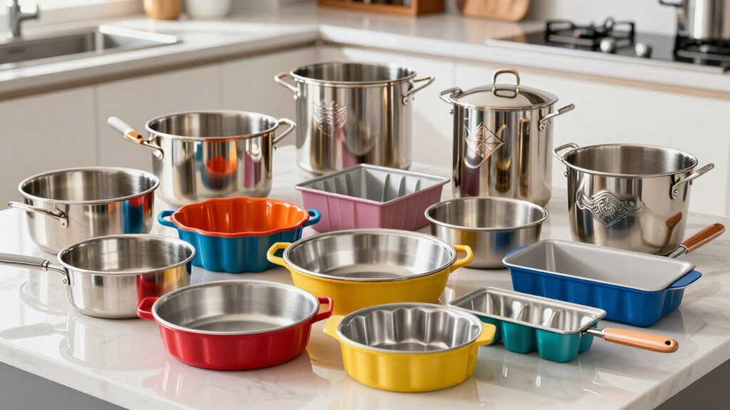 Choosing a pro bakeware set on Amazon starts with evaluating the quality of its materials, as this directly impacts durability, safety, and baking performance. High-quality bakeware should be made from durable materials like heavy-gauge aluminized steel, carbon steel, or anodized aluminum to ensure it lasts through many uses. It’s also essential that nonstick coatings are free from harmful chemicals such as PFOA, PTFE, and PFAS, so your food remains safe. The materials need to be oven-safe at high temperatures—usually up to 450°F or more—to handle various recipes. Additionally, good bakeware provides even heat distribution, preventing hot spots and delivering consistent results. Lastly, it should meet safety standards and resist warping, staining, and corrosion, ensuring long-term performance and safety.