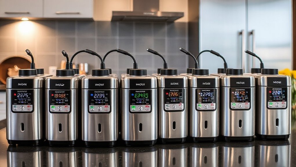 Wattage plays a crucial role in how quickly and efficiently a sous vide immersion circulator heats water and maintains precise temperatures throughout cooking. Generally, higher wattage models, like those with 1000W or more, heat water faster and recover more quickly if the temperature drops. This means less waiting time and more consistent results, especially during long cooks. While higher wattage can mean increased energy use, it often saves time in busy kitchens. It’s important to match wattage to your water volume; larger volumes require more power to heat effectively. Lower wattage devices may take longer to reach the desired temperature but can still perform well for smaller batches. Ultimately, choosing the right wattage balances heating speed, energy efficiency, and your specific cooking needs.