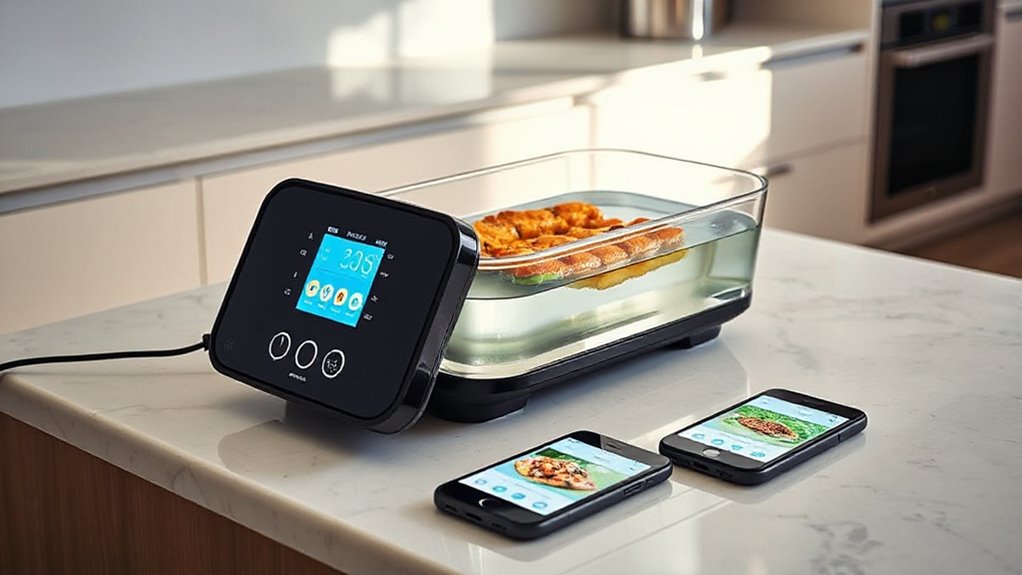Trust me, these 13 sous vide immersion circulators with app control are nothing short of game-changers. They’ll elevate your cooking to legendary status, turning even the simplest meal into a culinary masterpiece in minutes. With these gadgets, you’ll conquer the kitchen like a pro and impress everyone at the table. Don’t settle for less—dive into precision, convenience, and perfection. Your taste buds will thank you, and your friends will swear you have a secret culinary superpower!